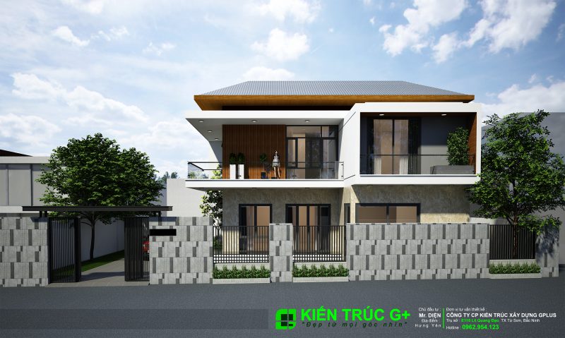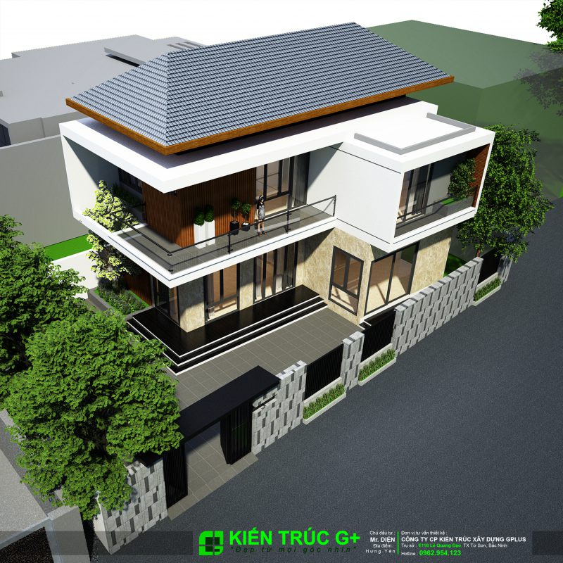 Đội ngũ của Kiến Trúc G+ đã ngay lập tức lên kế hoạch và cùng anh về Văn Lâm – Hưng Yên để khảo sát và lên ý tưởng thiết kế. Kết quả là một ngôi biệt thự mang dáng dấp hiện đại, cùng với cây xanh, sân vườn rộng, hòa lẫn vào không gian của vùng quê Văn Lâm thân thuộc, Anh rất hài lòng và Bố Mẹ anh cũng rất vừa ý với căn biệt thự của mình.