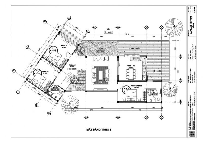 Công trình  Biệt Thự 2 tầng với các không gian chức năng chính từ sân ngoài bước vào là sảnh đón tam cấp chất liệu là đá granite màu vàng kem, tạo sự sang trong, ấm cúng. Bước vào bên trong là không gian phòng khách rộng và thoáng đãng với điểm nhấn trang trí là khu vực cầu thang và tiểu cảnh bên tay phải. Bên trái là không gian phòng Bếp và Ăn rộng 20m2 kết nối với sân BBQ ngoài trời, sân cảnh rất thích hợp cho các buổi tiệc nướng cuối tuần.
