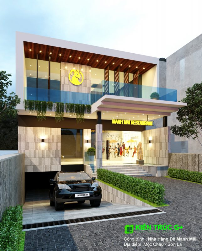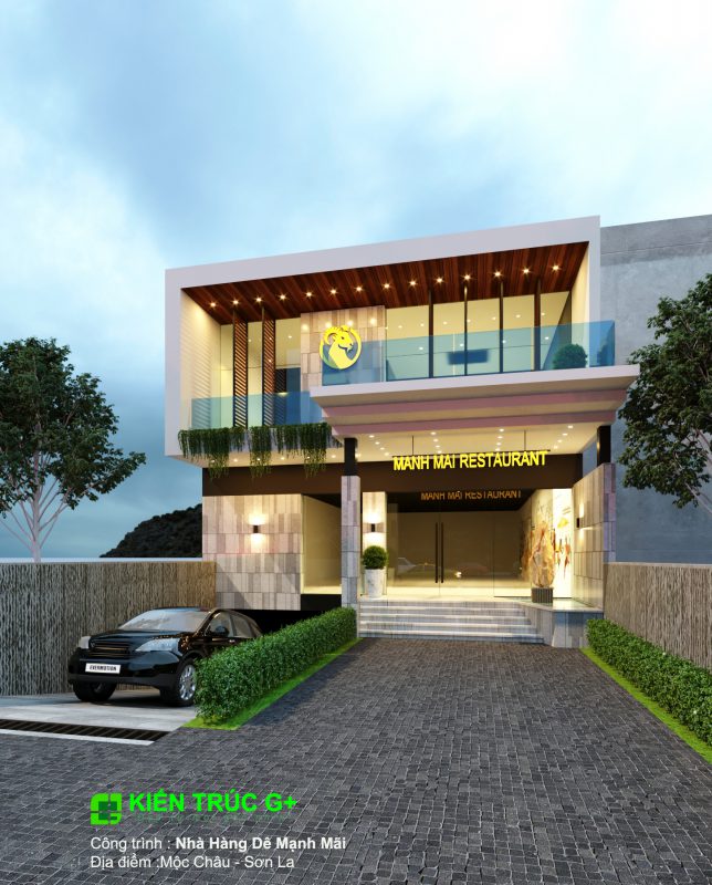 Phong cách kiến trúc của Nhà Hàng hướng đến là phong cách hiện đại, nổi bật giữa núi rừng, hấp dẫn du khách đi ngang qua đây.